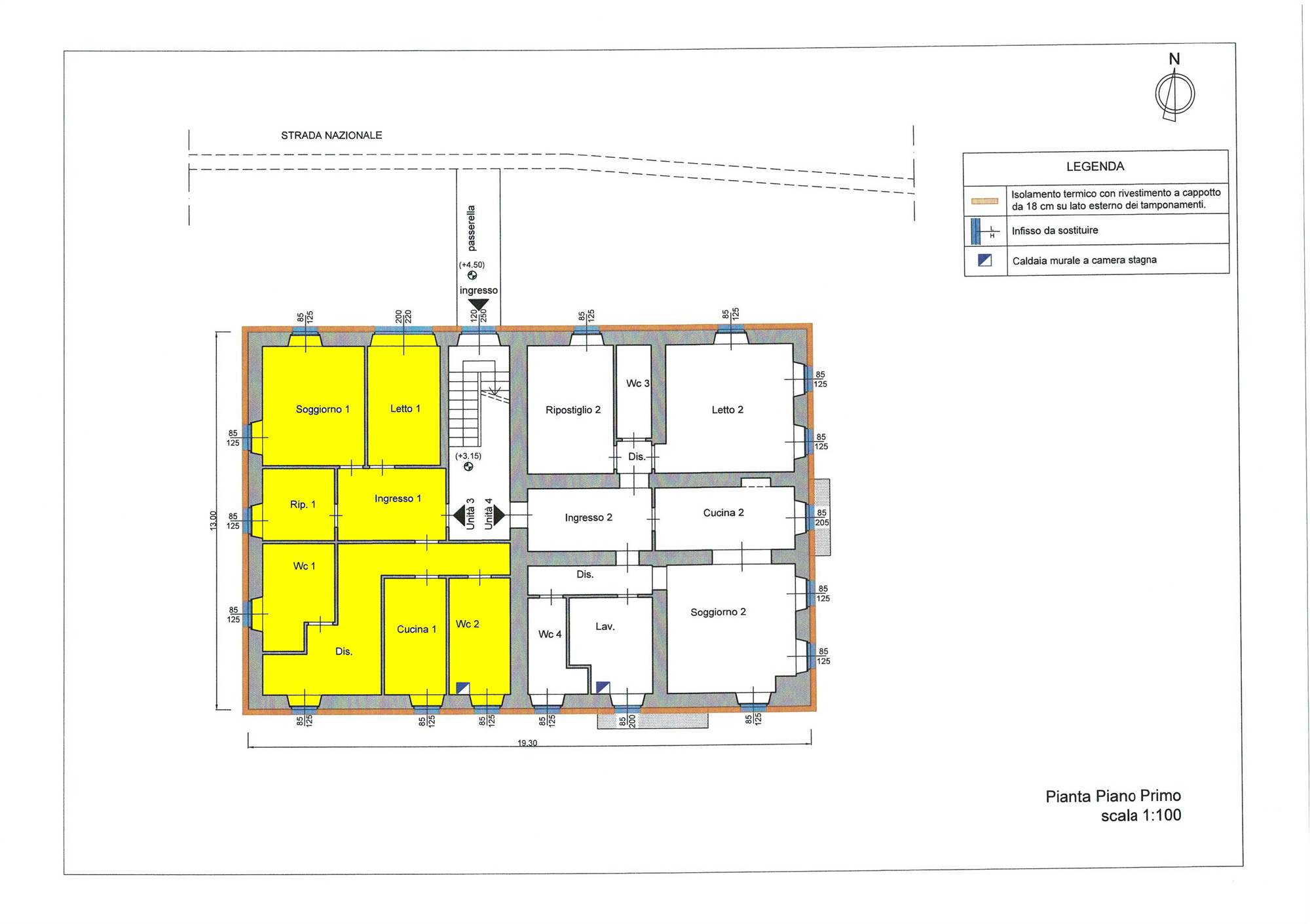 L’immobile, con esposizione sud/ovest/nord, è composto da ingresso, ampio soggiorno, cucina, n.3 camere da letto, n. 2 Bagni.